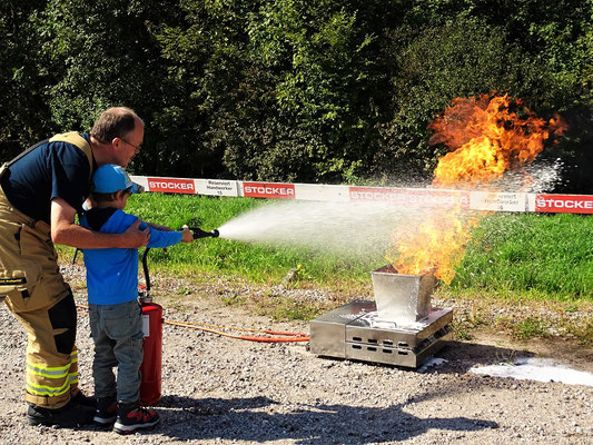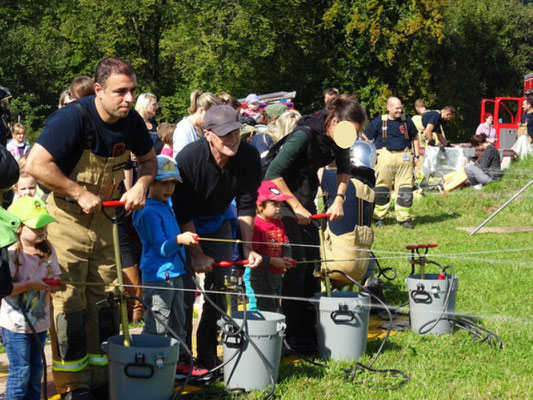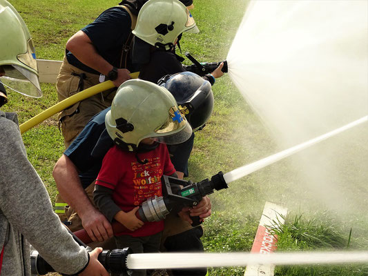 Pünktlich um 14 Uhr landet ein Helikopter der Rega auf dem Übungsgelände des Kantonsspital Baden, eines der vielen Highlights des Nachmittags. Einmal in einem Polizeiauto in der Verbrecher-Zelle sitzen, im Löschfahrzeug das Horn betätigen oder mit Feuerwehr-Helm ausgerüstet mit einem echten Feuerwehrschlauch Wasser spritzen.