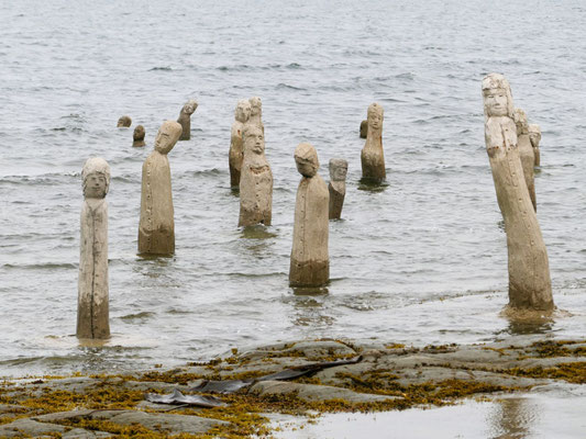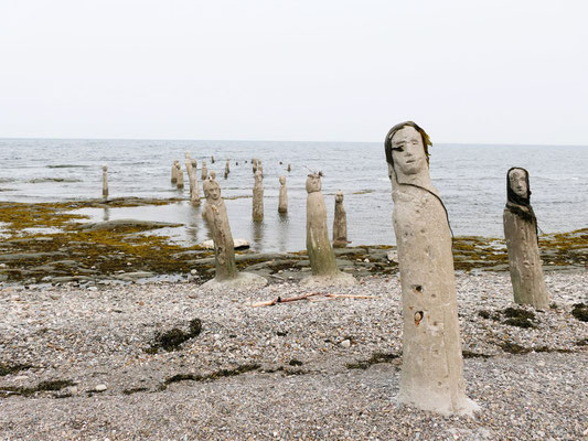 Weiter nördlich in Sainte Flavie besuchen wir La Grand Rassemblage/die grosse Zusammenkunft, ein Kunstwerk der besonderen Art. Diese aus dem Meer auftauchenden Figuren verändern sich ständig. Je nach Ebbe oder Flut sind sie ganz oder nur teilweise zu sehen.