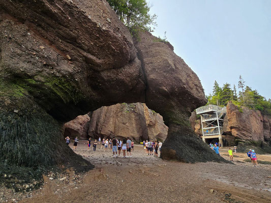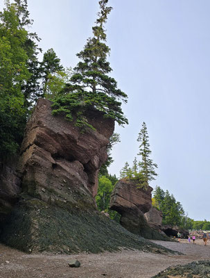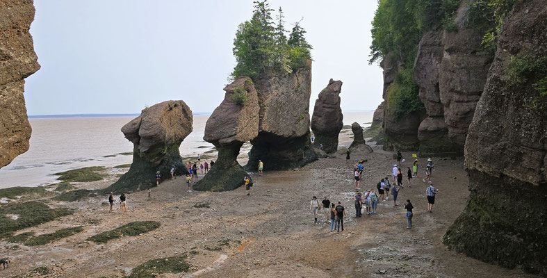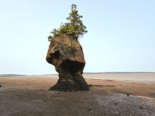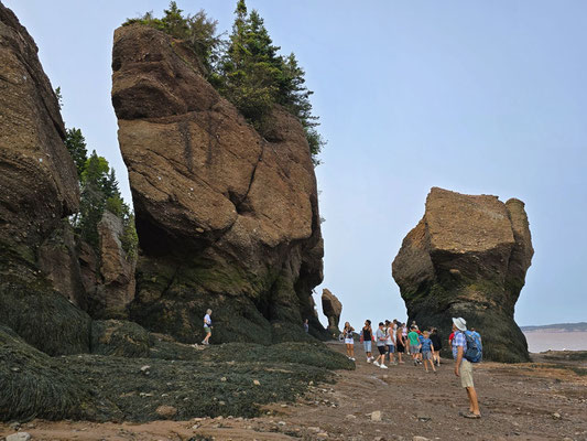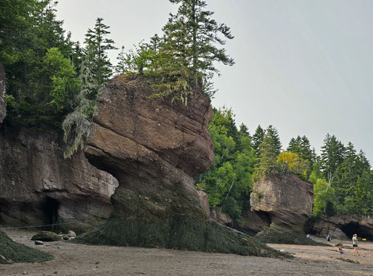 Obwohl wir uns nicht zu Augenzeugen dieser mächtigen Gezeitenunterschiede zählen können, sind wir trotzdem von den unterschiedlichen Wasserständen beeindruckt, als wir den Hopewell Rock Provincial Park innerhalb von zwei Tagen einmal bei Flut und einmal bei Ebbe besuchen.