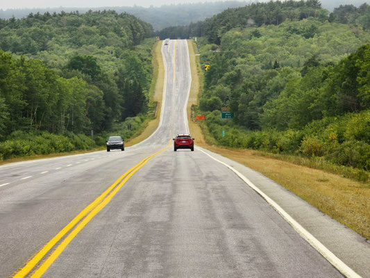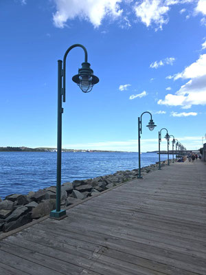 Zwei Tage später überqueren wir wieder die Grenze nach Nova Scotia. Die Fahrt nach Halifax ist unspektakulär, führt sie doch durch eine breite Waldschneise. Dort angekommen fahren wir zuerst zum Spediteur, der unseren Camper nach Europa verschiffen wird und holen uns dort die aktuellsten Informationen - das von uns angepeilte Schiff fällt aus :o(