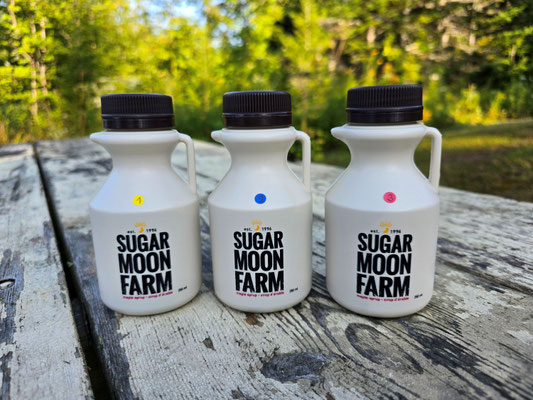 Zu Beginn der Zapf-Saison ist der Ahornsirup hell, fein und milde, gegen Saison-Ende dunkelt er merklich und weist herbe, kräftige Noten auf. Der Sirup von der Mitte der Saison schmeckt uns am Besten, die dunklen Sirups gegen das Ende der Saison sind uns zu rauchig.