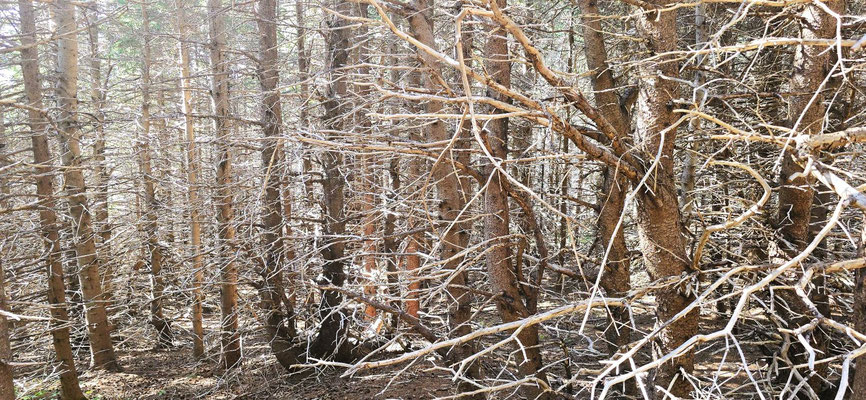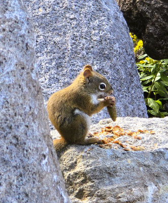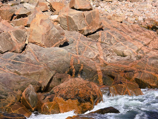 Ok, es hat auch Abschnitte unmittelbar am Meeresufer entlang mit Blick auf rosa Felsen und blaues Wasser, der grösste Teil der Strasse führt jedoch meist durch dichten Laub- und Nadelwald.
