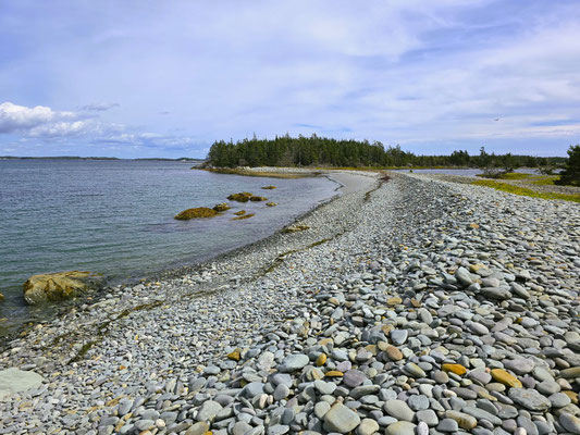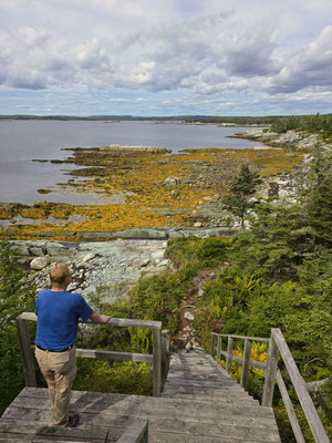 Nach der interessanten Degustation bei Glenora verlassen wir Cape Breton, durchqueren das waldige Gebiet von New Glasgow und fahren in den Süden ans Meer nach Taylors Head. Bevor es aber heute Abend auf dem Murphy's Cove Campground ein feines Fisch-Fondue gibt, wollen wir noch ein paar Kalorien verbrennen - wir laufen um die Taylors Head Halbinsel
