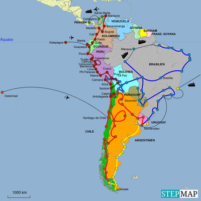 Vom kühlen Sommer am Antarktischen Meer bis zum vereisten Frühling am Arktischen Meer, durch Steppen, Regenwälder, Wüsten, Tundras,Taigas, Salzseen, über ausgewaschene Erdwege, menschenleere Hochgebirge, 20-spurigen Autobahnen, auf gewaltigen Flüssen, bis ans Ende von Zivilisationen - wir waren unterwegs.