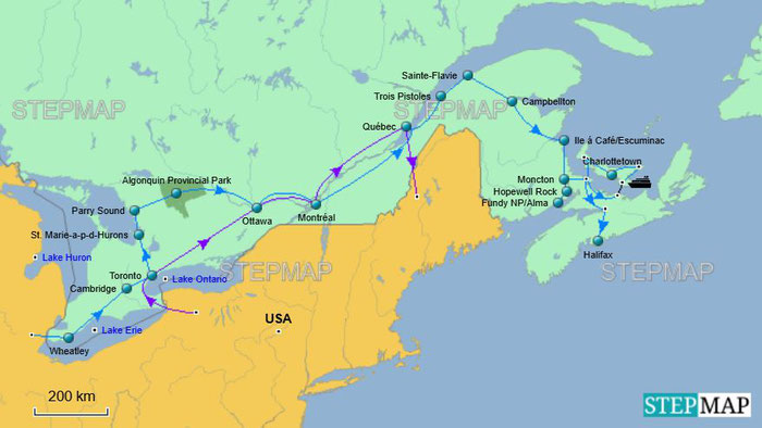 Übrigends - der Name der östlichsten von uns bereisten kanadischen Provinz Nova Scotia stammt aus dem Jahr 1621, als König Jakob von Schottland und England einem Schotten das Gebiet zwischen Neuengland und Neufundland übertrug. Die offizielle Verleihungsurkunde war damals in Latein verfasst und so wurde für Neuschottland die lateinische Form 'Nova Scotia' übernommen.